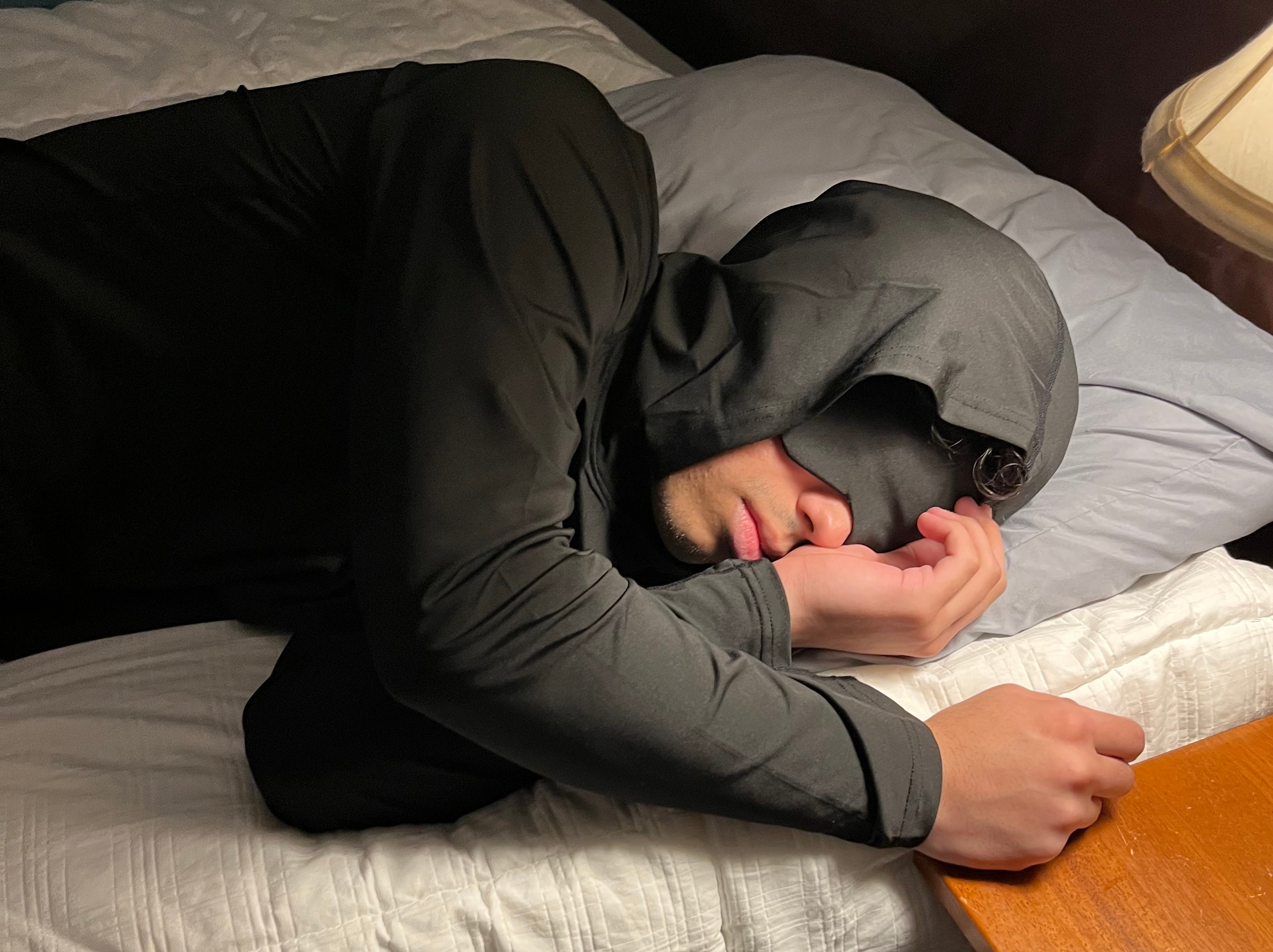 "The Sleep Hoodie is required gear for blocking out my roomate's ... what's he even doing over there?!"